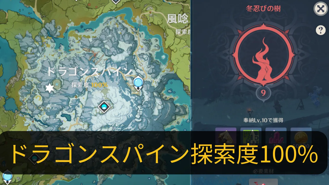 ドラゴンスパイン探索度100%と宝箱の数、アチーブメントの進捗